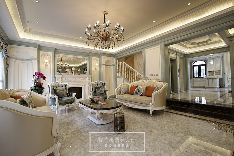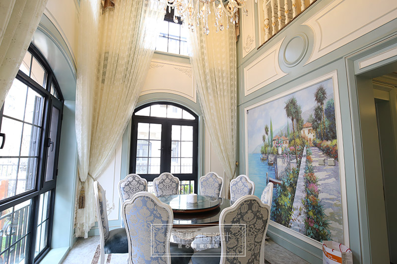 【紫原創(chuàng)-裝修實景】布局上突出軸線的對稱,恢宏的氣勢,注重居室空間的豪華舒適;細節(jié)處理上運用法式廊柱、雕花、線條,制作工藝精細考究;崇尚沖突之美,均是法式風(fēng)格的特色。