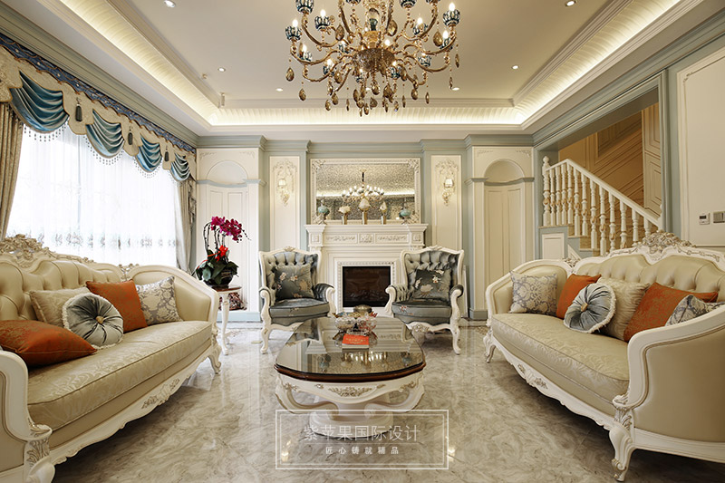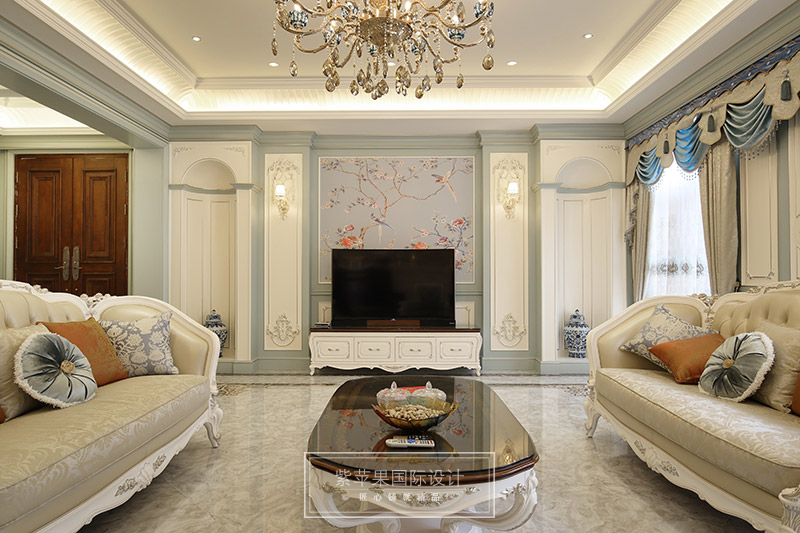 開放式的空間結(jié)構(gòu)、隨處可見的花卉和綠色植物、雕刻精細的家具……所有的一切從整體上營造出一種田園之氣。Tiffany藍的純粹,靈動,浪漫又優(yōu)雅,讓很多為之癡狂,設(shè)計師將它融入在空間里,在白色墻面,白色家具的襯托下,顯得空間清澈純凈,如絲般流動柔滑,一股浪漫的氣息在空間里肆意流轉(zhuǎn)!