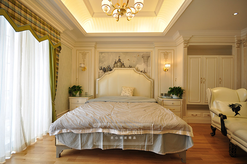 過道處的細節(jié)處理上,制作工藝清細考究,在壁燈柔美燈光的映襯下,造舊白的色澤十分干凈,簡單不失高雅氣息。簡潔自然的線條勾勒出過道空間的浪漫典雅。